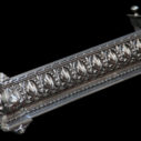 Antique cast iron fender decorated with an anthemion design . Circa 1871 .