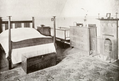CFA Voysey fireplace manufactured by the Falkirk foundry , design number 64 Circa 1899 . Charles Voysey was an eminent Arts and crafts architect and designer who designed this fireplace for the main bedroom at his own house – The Orchard .